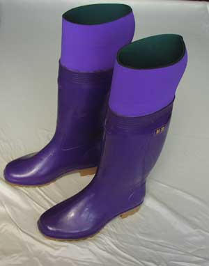 | 備考 | 66ナイロン基布に超耐寒・耐油配合、 表面ビニール加工 ゲージ0.6mm ビニール長靴にズボンを接合、耐油底 |